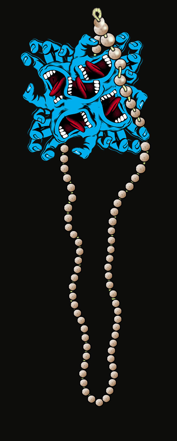 This is a graphic made from appropriating Jim Phillips screaming hand graphic for Santa Cruz skateboards. I first saw these graphics as a teenager in the 80s looking through skate fashion magazines of my father. As the fashion move through its wave of nostalgia the Santa Cruz brand has become popular again.